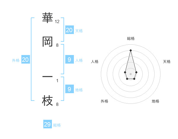 華岡 一枝さんの総格は29画の4点!