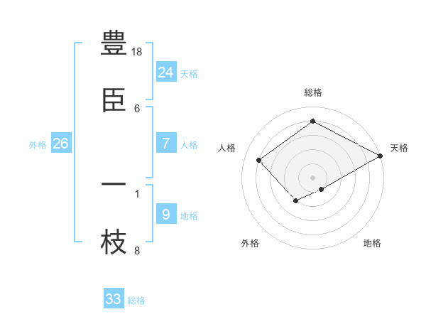 豊臣 一枝さんを姓名の画数から五運を鑑定
