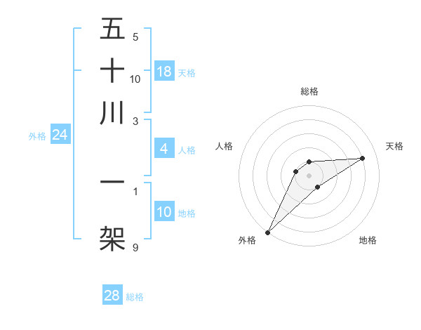 五十川 一架さんの総格は28画の1点!