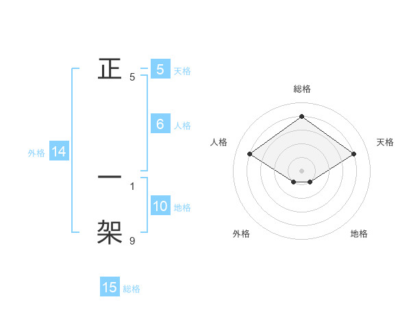正 一架さんの総格は15画の4点!