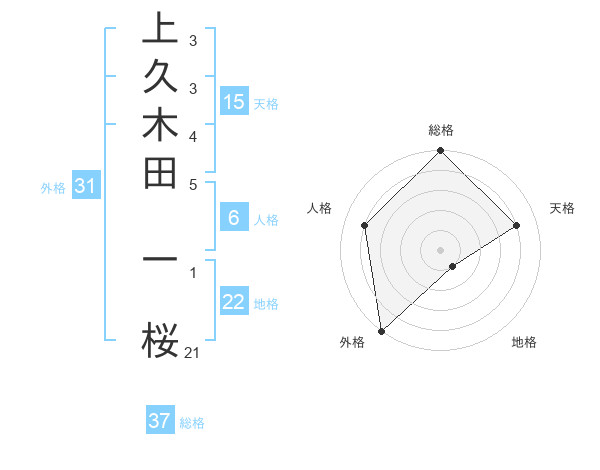 上久木田 一桜さんの総格は37画の5点!