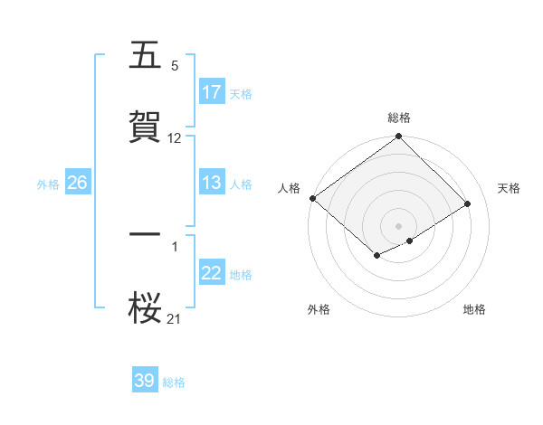 五賀 一桜さんを姓名の画数から五運を鑑定
