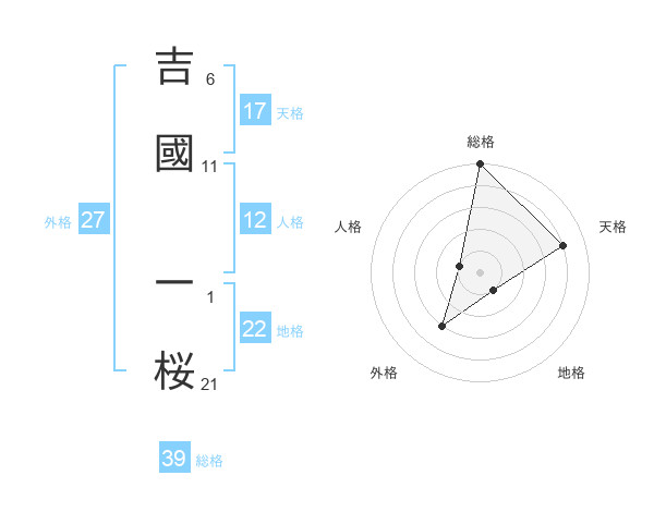 吉國 一桜さんの外格は27画の3点!