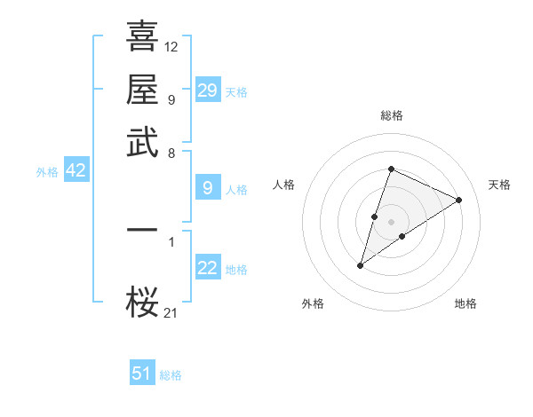 喜屋武 一桜さんの総格は51画の3点