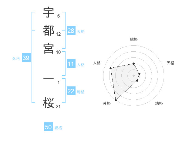 宇都宮 一桜さんを姓名の画数から五運を鑑定