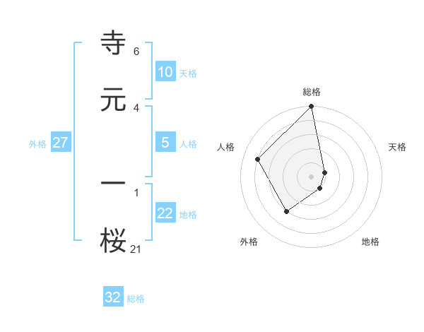 寺元 一桜さんの総格は32画の5点!