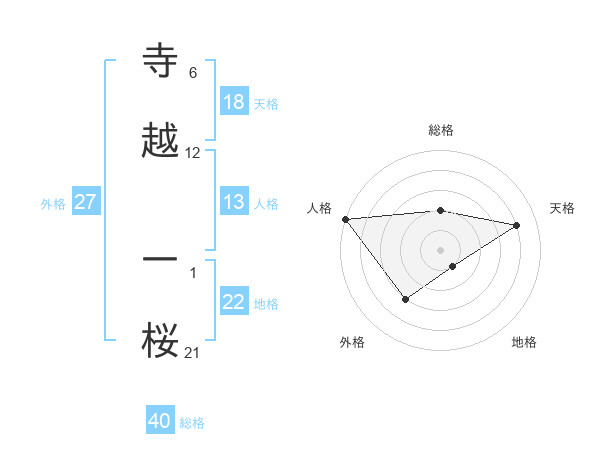 寺越 一桜さんを姓名の画数から五運を鑑定