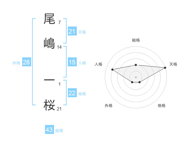 尾嶋 一桜さんを姓名の画数から五運を鑑定
