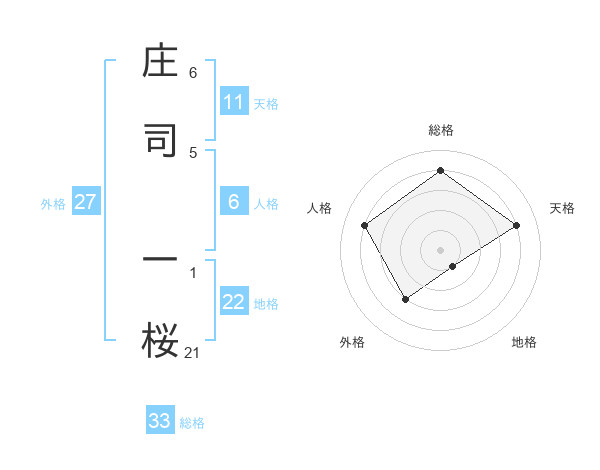 庄司 一桜さんを姓名の画数から五運を鑑定