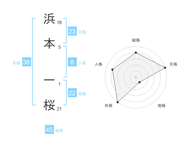 浜本 一桜さんを姓名の画数から五運を鑑定