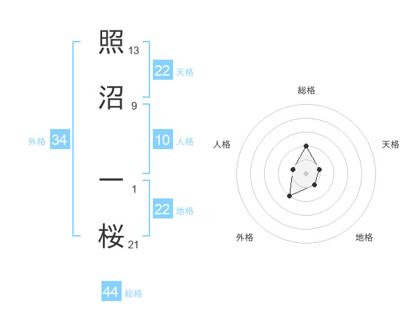 照沼 一桜さんの地格は22画の1点!