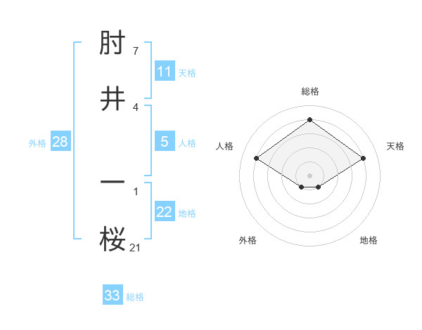 肘井 一桜さんを姓名の画数から五運を鑑定