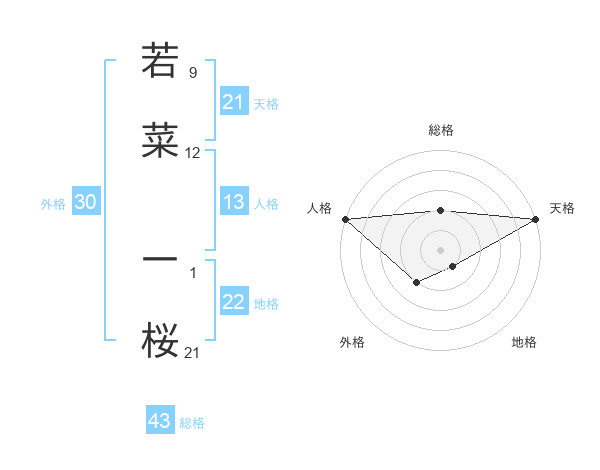 若菜 一桜さんを姓名の画数から五運を鑑定