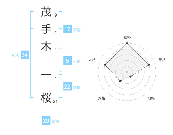 茂手木 一桜さんを姓名の画数から五運を鑑定