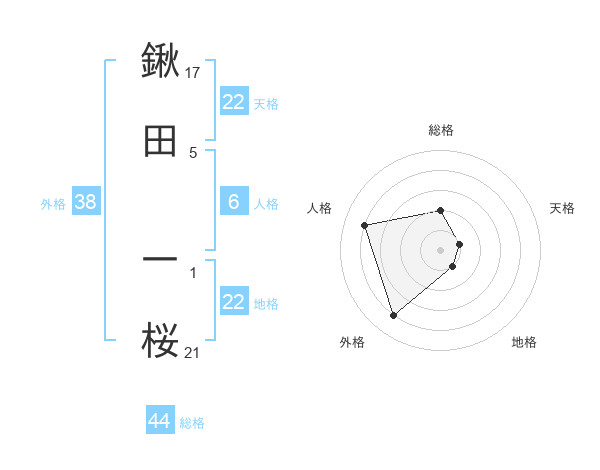 鍬田 一桜さんの地格は22画の1点!