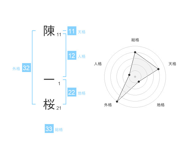 陳 一桜さんの総格は33画の4点!