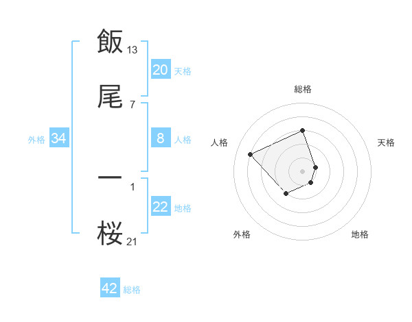 飯尾 一桜さんの総格は42画の3点!