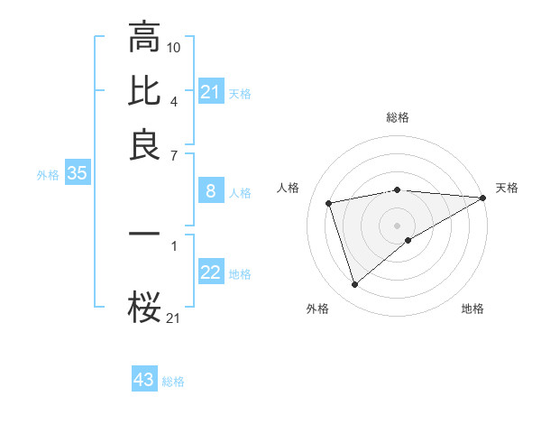 高比良 一桜さんを姓名の画数から五運を鑑定