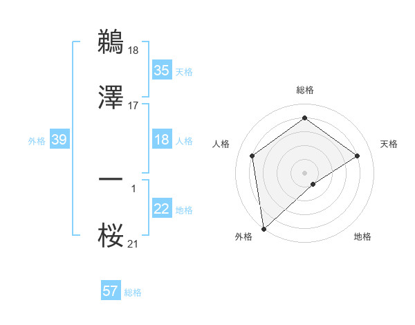 鵜澤 一桜さんを姓名の画数から五運を鑑定