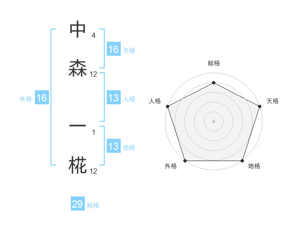 中森 一椛さんの総格は29画の4点!