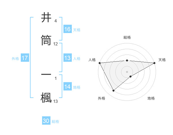 井筒 一楓さんを姓名の画数から五運を鑑定