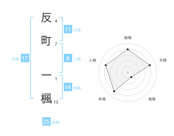 反町 一楓さんの総格は25画の4点!