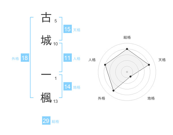 古城 一楓さんの総格は29画の4点!