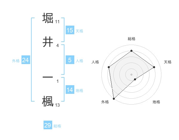 堀井 一楓さんの外格は24画の5点!