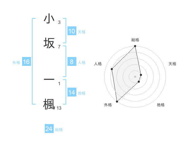 小坂 一楓さんを姓名の画数から五運を鑑定