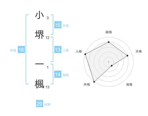 小堺 一楓さんを姓名の画数から五運を鑑定