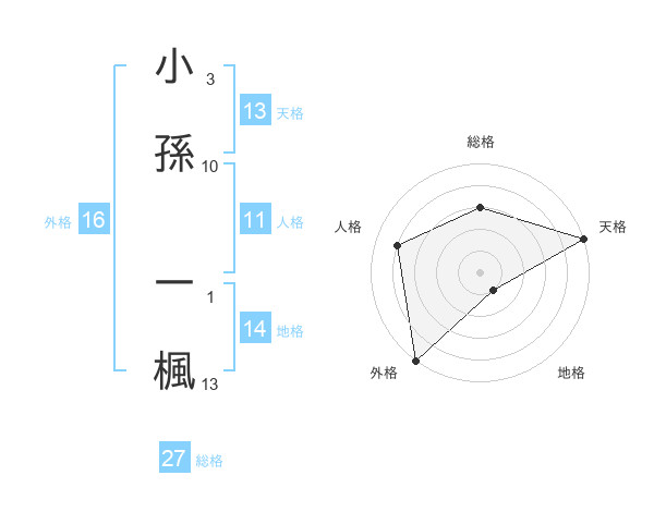 小孫 一楓さんの天格は13画の5点!
