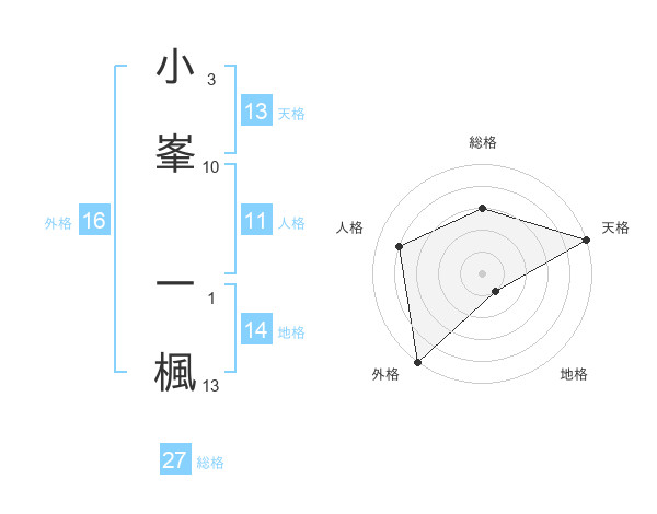 小峯 一楓さんの天格は13画の5点!
