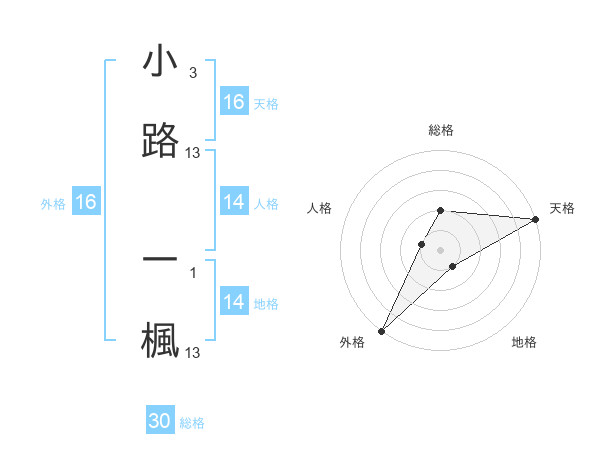 小路 一楓さんの外格は16画の5点!