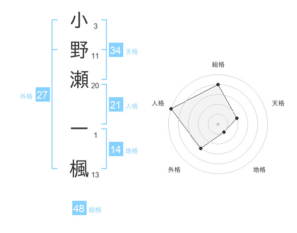 小野瀬 一楓さんを姓名の画数から五運を鑑定