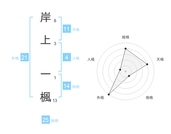 岸上 一楓さんを姓名の画数から五運を鑑定