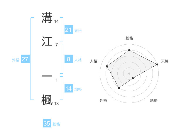 溝江 一楓さんの総格は35画の4点!
