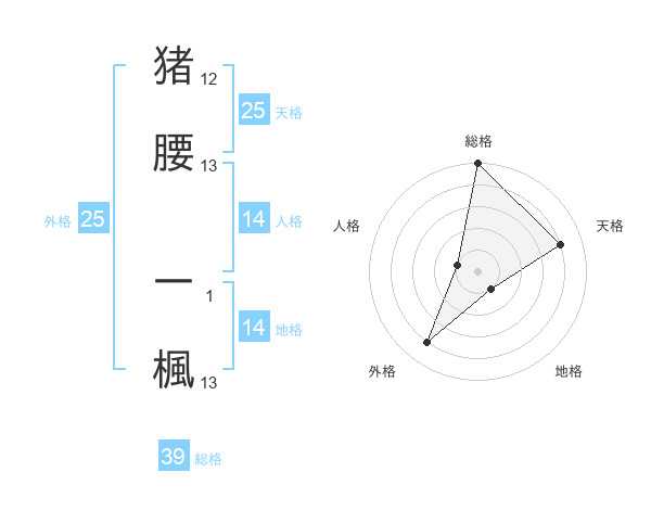 猪腰 一楓さんの総格は39画の5点!