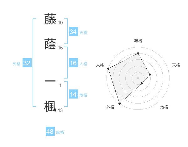 藤蔭 一楓さんの天格は34画の2点!
