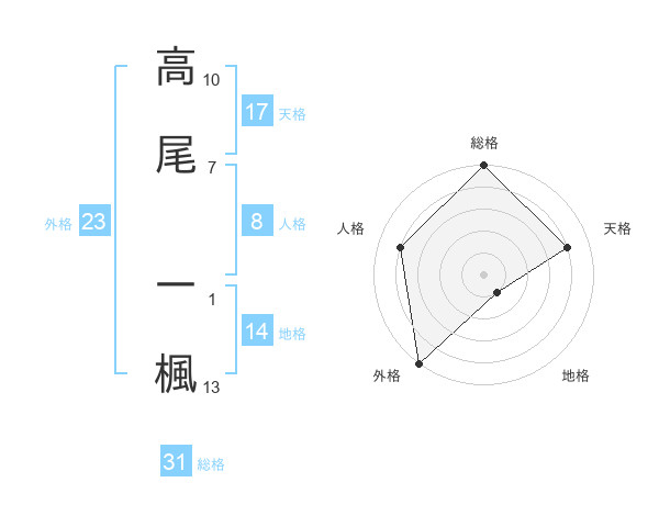 高尾 一楓さんの総格は31画の5点!