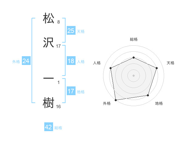 松沢 一樹さんを姓名の画数から五運を鑑定