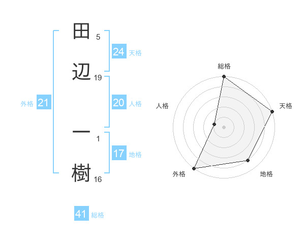 田辺 一樹さんの天格は24画の5点!