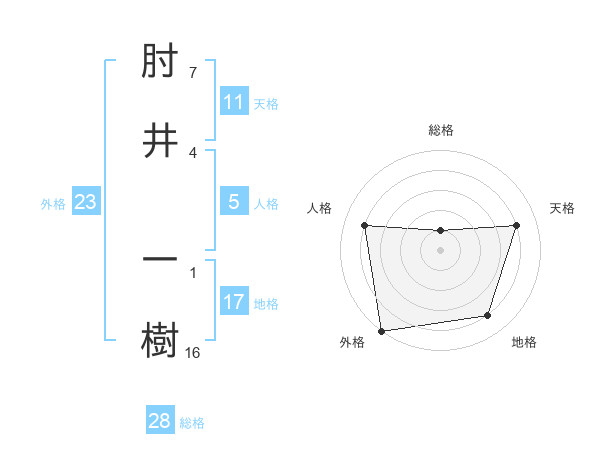 肘井 一樹さんの外格は23画の5点!