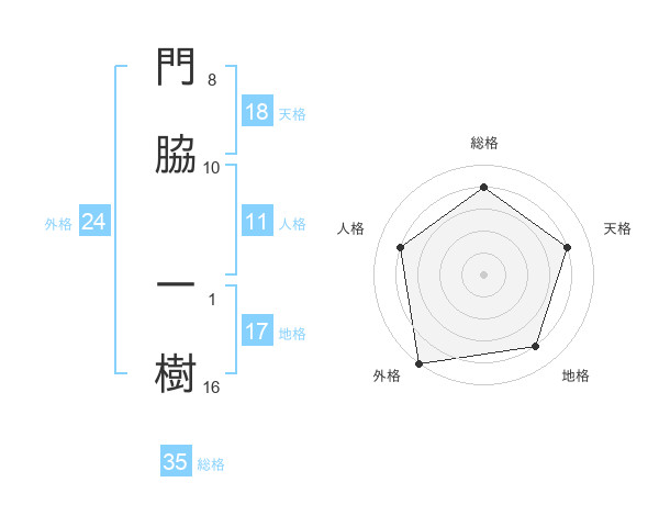 門脇 一樹さんを姓名の画数から五運を鑑定