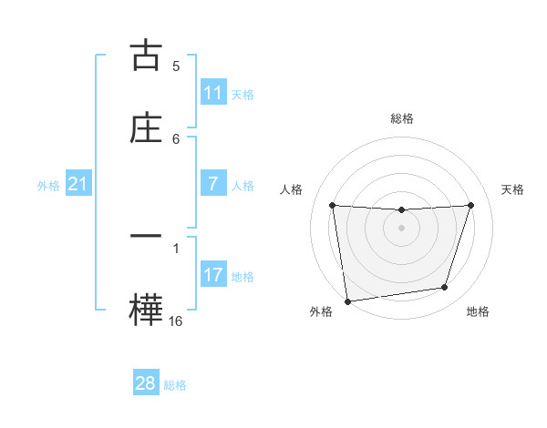 古庄 一樺さんを姓名の画数から五運を鑑定