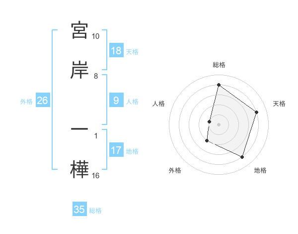 宮岸 一樺さんを姓名の画数から五運を鑑定