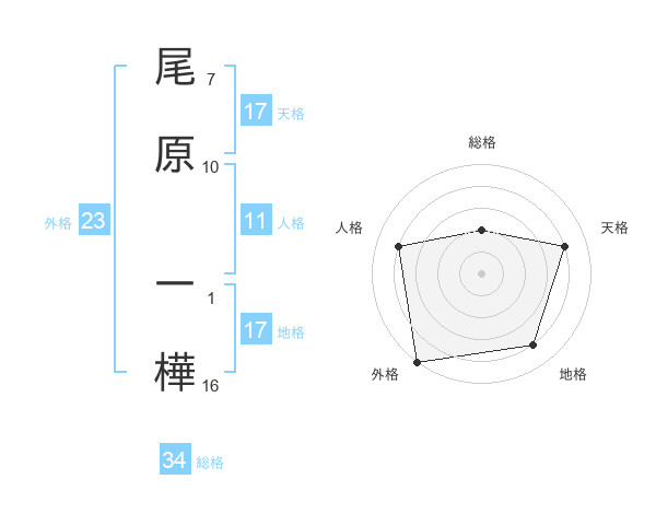 尾原 一樺さんの天格は17画の4点!