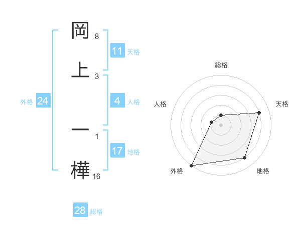 岡上 一樺さんを姓名の画数から五運を鑑定