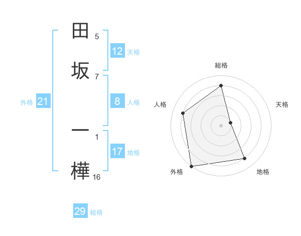 田坂 一樺さんを姓名の画数から五運を鑑定