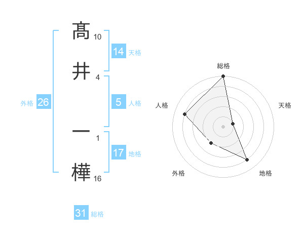 髙井 一樺さんの総格は31画の5点!