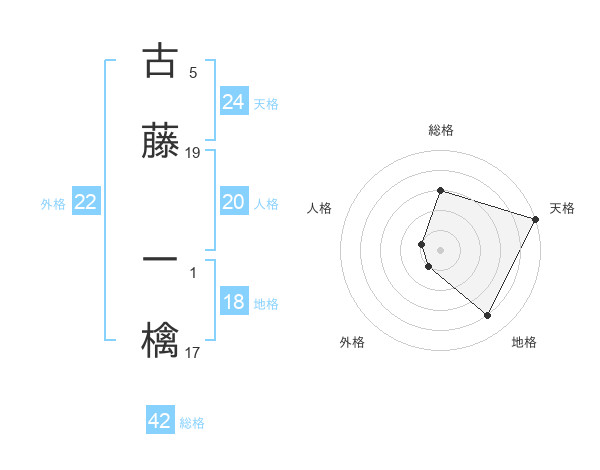 古藤 一檎さんの総格は42画の3点!